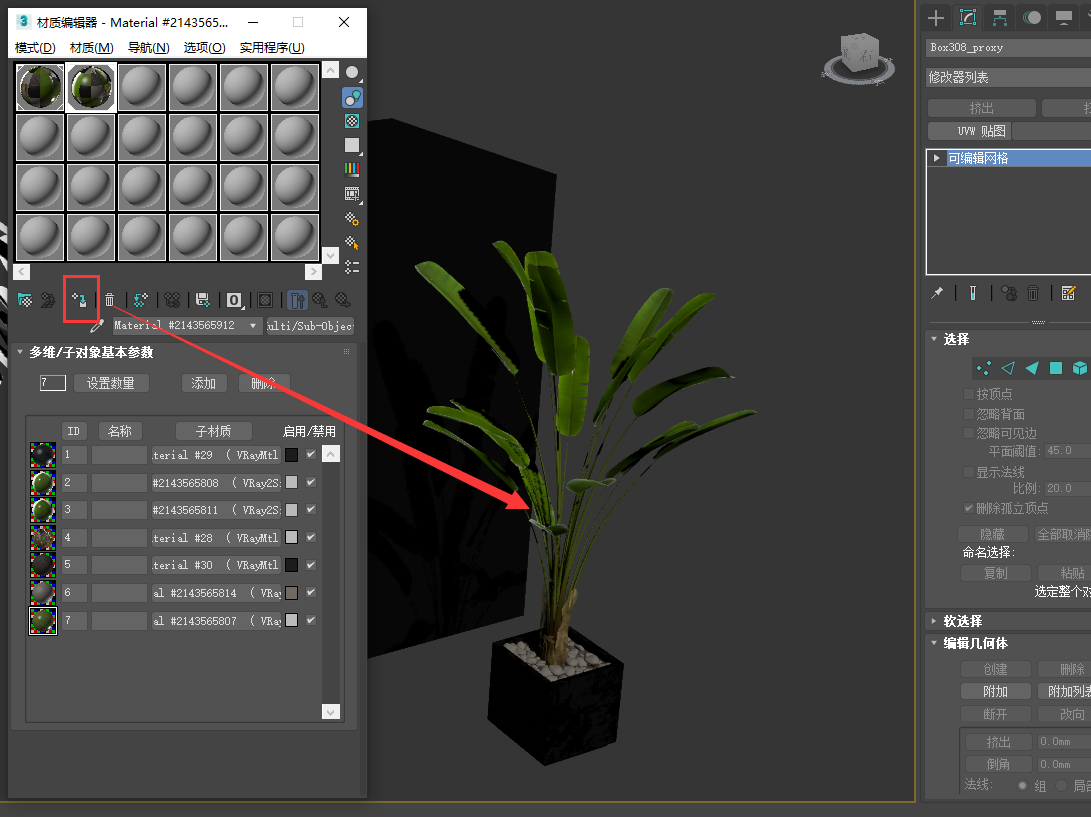 但是目前是没有材质的,我们将之前的多维子材质赋予给它,不过要注意VR3.0以下的版本是没有这个选项的。