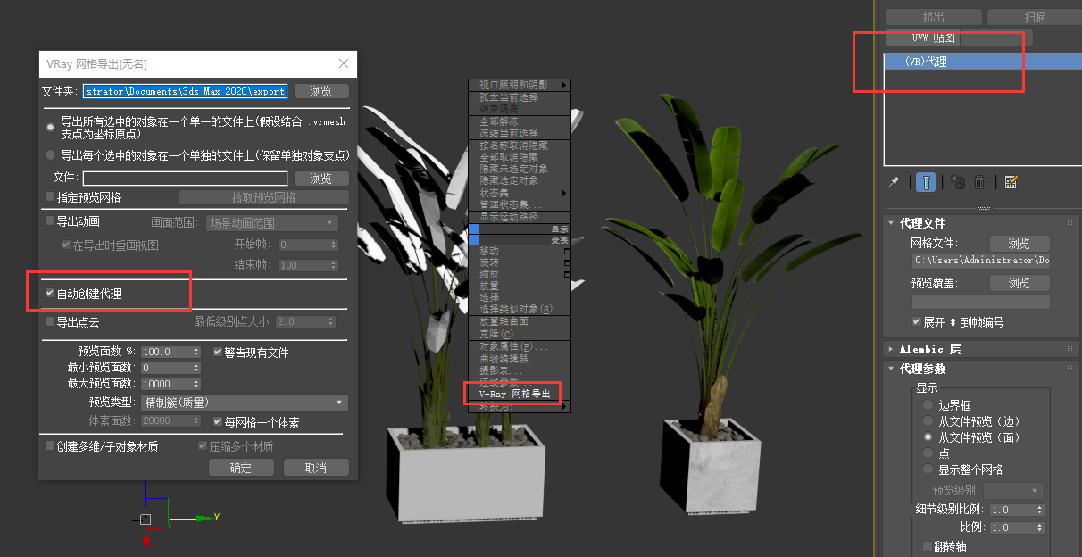 我们选择第一种,右键网格导出,勾选自动创建代理,点击确定就可以完成了,可以看到编辑面板,已经改变。
