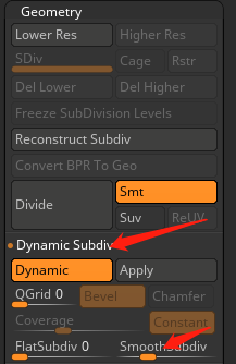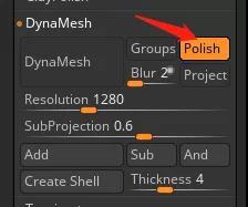 在这个时候我使用到了dynamesh 的polish,在dynamesh的条件下会进行抛光,使表面更加光滑。大家可以尝试一下,也许会有新的发现。
