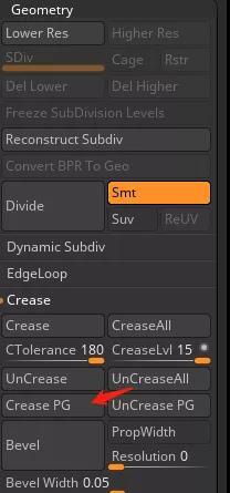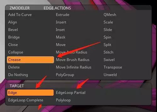 当然这还不够,我们还需要进行卡边的制作,这里我使用的是zb的crease。选择zmodeler,选择线模式,选择crease。