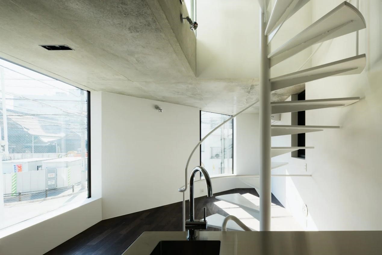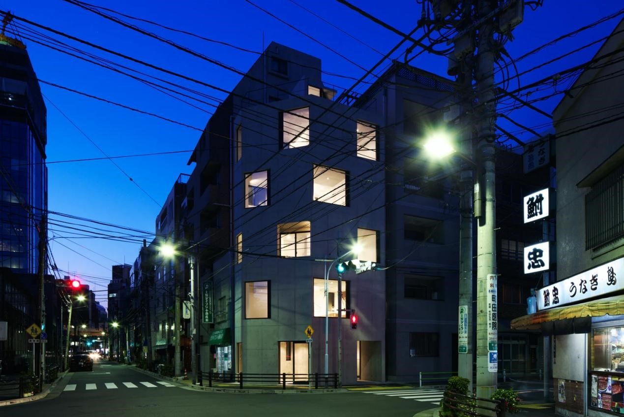 DAMIER建成于2009年,是一个住宅与商铺相结合的项目。它位于东京老城区的商业区,坐落在一个只有30平方米的角落地段。为了弱化不利的地理位置的影响,设计团队将重点放在了立面上。用引人注目的混泥土搭配玻璃棋盘格,来突出角落。不仅如此,从室内看去,玻璃棋盘格窗口可以得到更好的采光以及视野。一楼的商铺和楼上业主的住所都是单人间,设计团队通过创造连续的空间,避免将其分隔成更小的空间,从而实现了视觉上超越实际面积的宽敞结构。