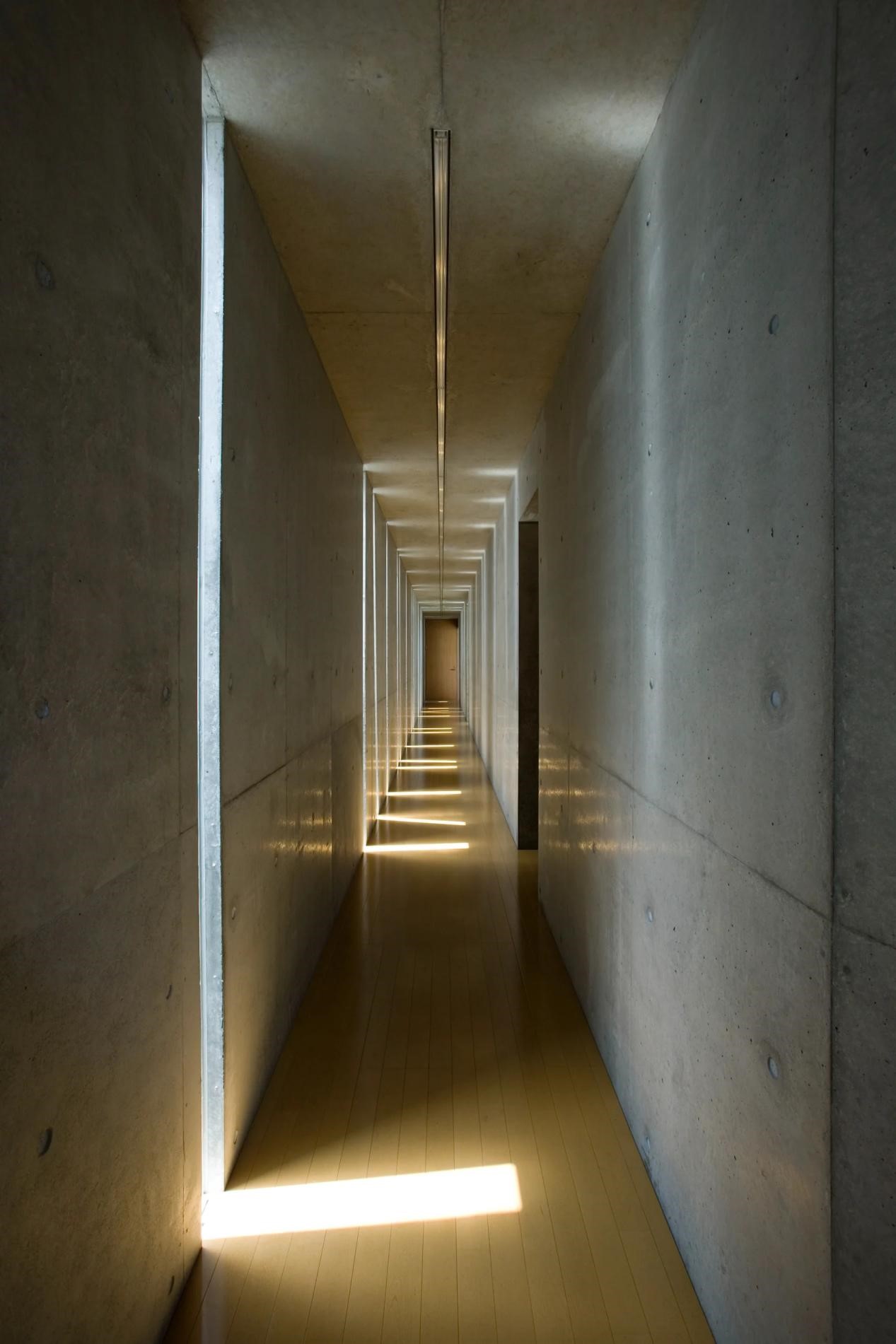 Slit House坐落在日本的老城区,是一栋没有窗户的建筑。它采用的是“狭缝”设计,建成于2005年。长达105米的墙上,一共有60道狭窄的缝隙,用于通风流动与自然采光。基于狭窄的缝隙,居住者对室内的光线会更加敏感。建筑本身充满了光影魅力,将光的美学发挥到了极致。这种设计概念,为当代建筑提供了一种新的设计思路——除去玻璃窗外的新方法。