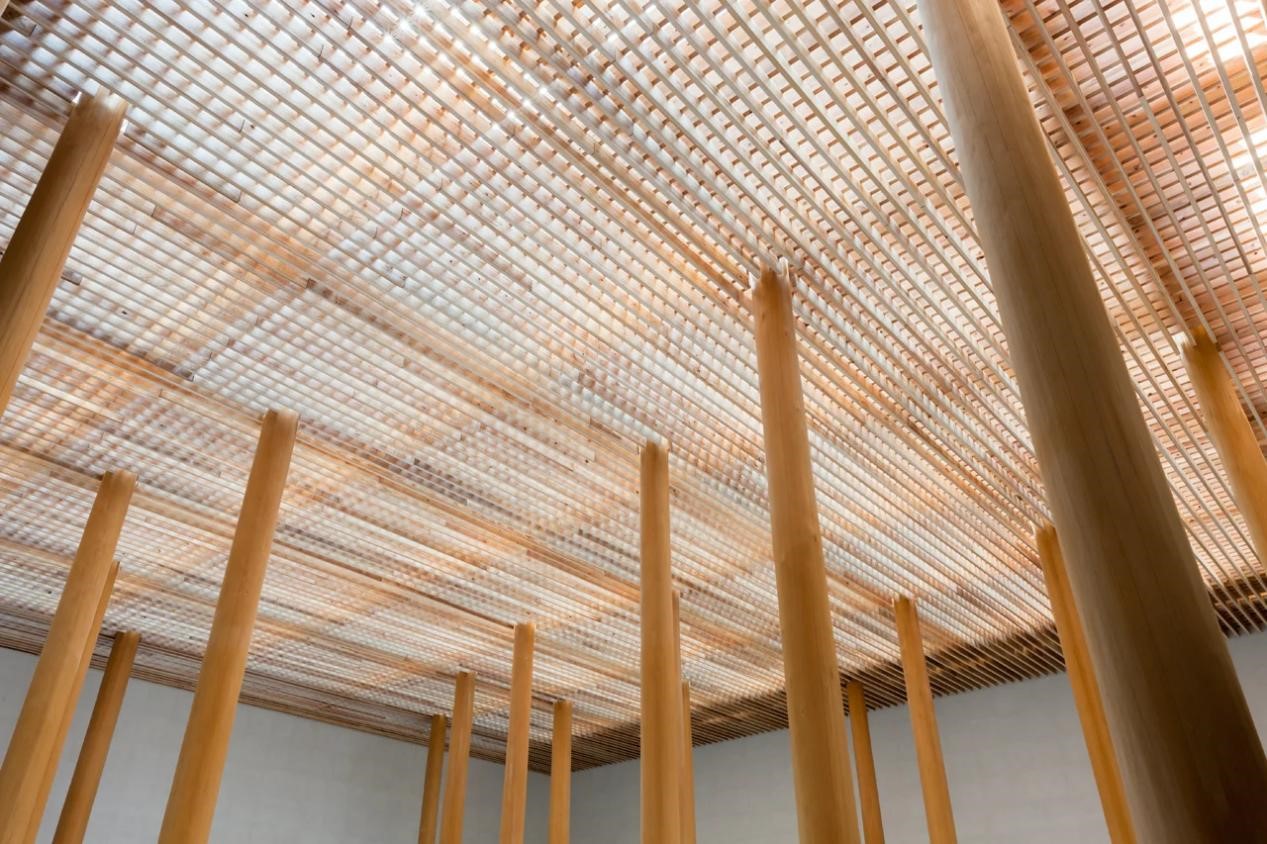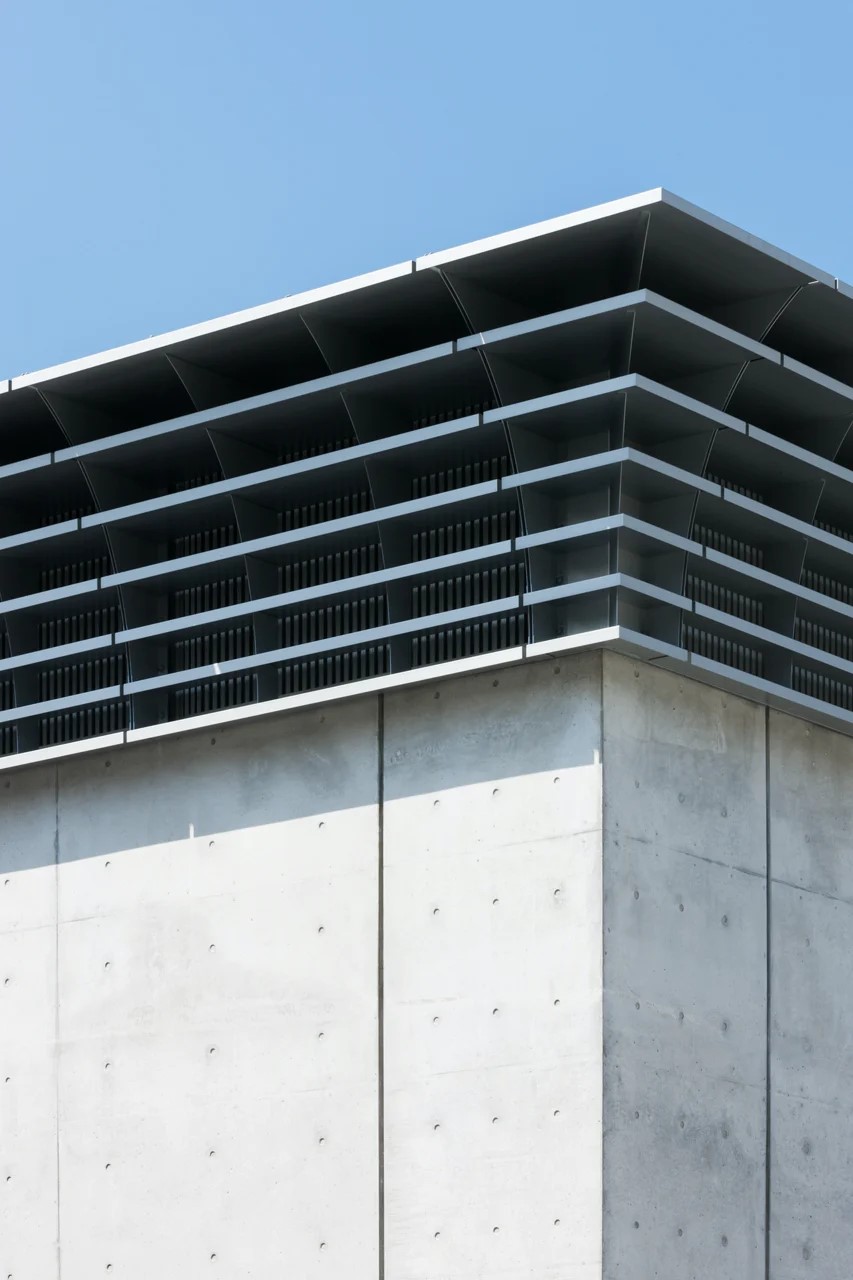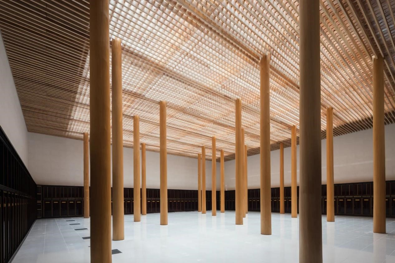 Myoenji Columbarium区别于其他住宅,这个项目是福冈县的一处骨灰安置所。应日本明圆寺需求所建,建成于2014年。设计团队面临的一大挑战是,要在保证采光的同时保持室温。于是,便有了图中的结构——一个全玻璃但并着木制格栅的屋顶,实现了在保证光线充裕的同时,又保持凉爽与舒适。屋顶由4层构成,木制格栅既是遮阳装置,也是结构支撑,直径25厘米的木柱穿过格状框架与之相抵。墓地周围环绕着约6米高的RC剪力墙(400mm厚),剪力墙则由钢筋混凝土制成。