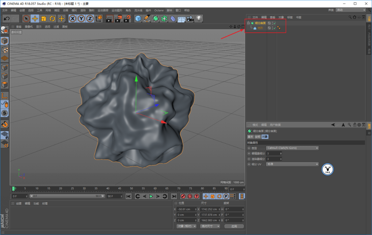 Ctrl+r渲染预览一下,你会发现对象上有很多颗粒,效果不太好: