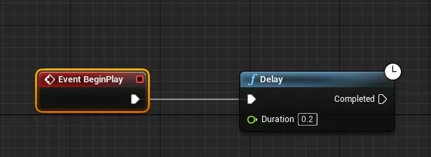 日常生活中接触不良的灯泡的闪烁频率其实是不一样的,也就是每个亮度的持续时间是不一样的,所以我们需要在设置物理灯光的intensity和模型灯光的emissive之前进行亮度持续时间的设置,所以在Event Graph中,在Event BeginPlay 添加一个Delay节点。