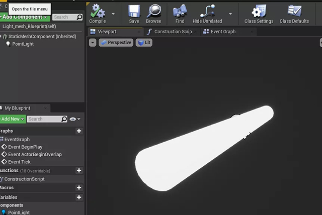 然后右键给这个mesh创建蓝图,并在蓝图中添加一个point light。
