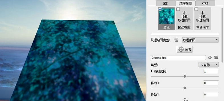 3、下面的平面赋予漫反射材质,并从网络中搜索一张接近蓝色的噪点图片。