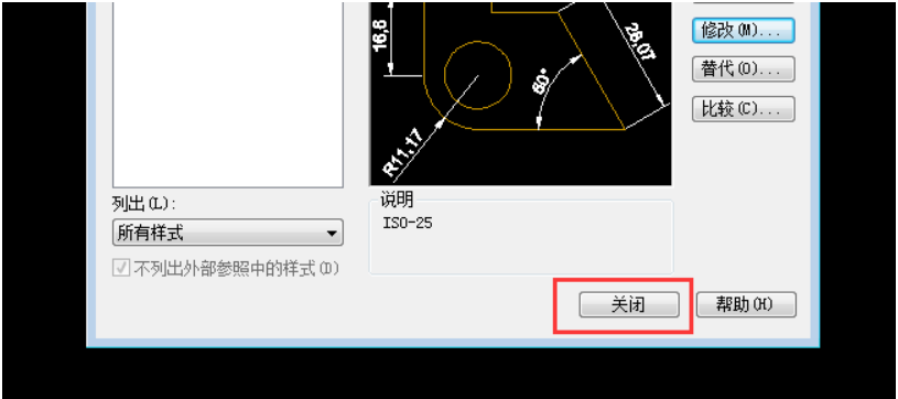 第7步、设置好后,就要点击关闭标注样式管理器。