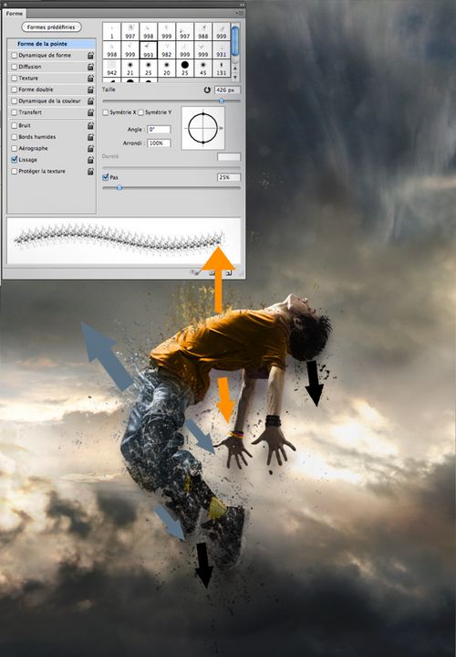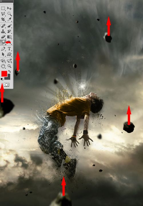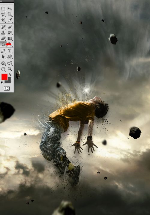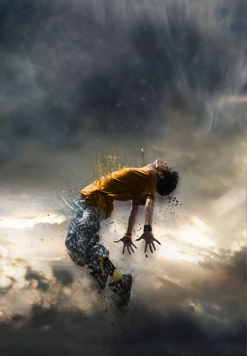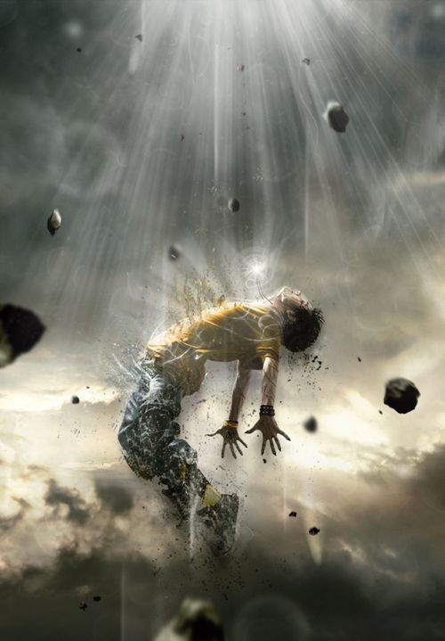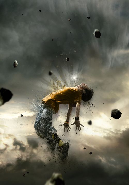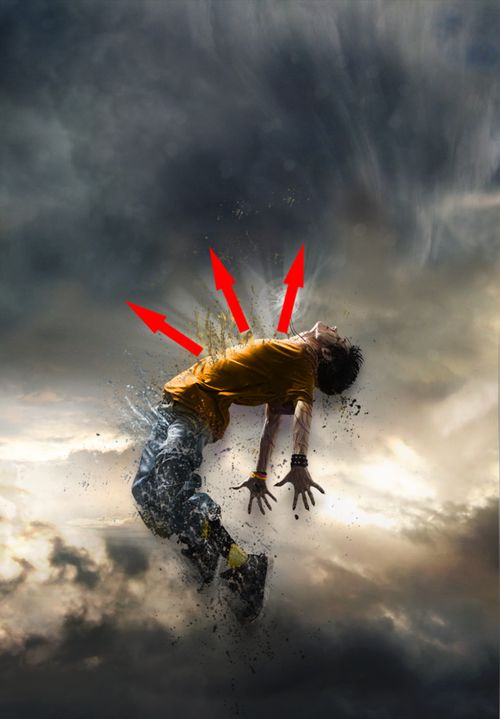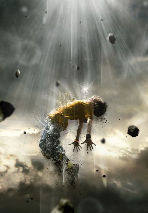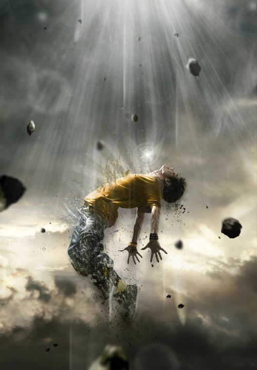 总结:这篇教程中最重要的是对画笔的运用,环绕人体的一些碎块,需要事先下载好一些颗粒、喷溅等笔刷。