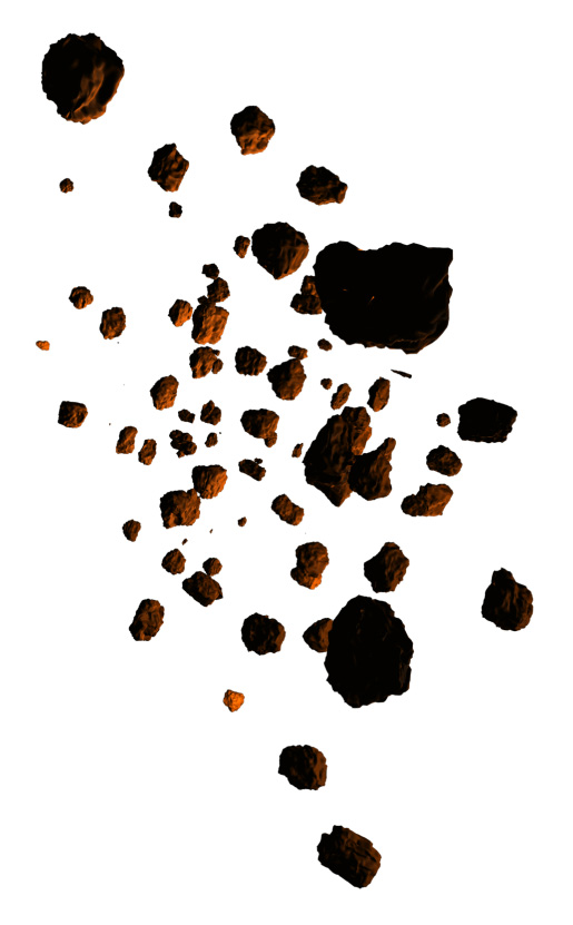 步骤15、用强度为5%-10%的涂抹工具对每一块陨进行调整,从底部到顶部涂抹,表现陨石因快速下降而略微变形的效果。