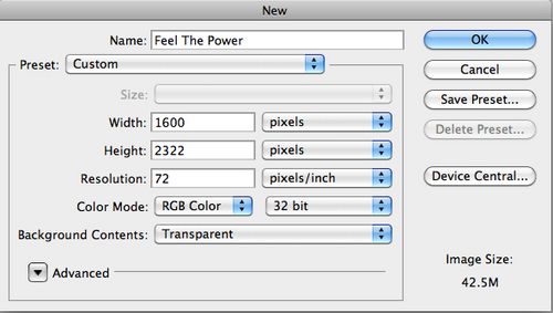 步骤1、在ps中创建一个新文档(最好保持垂直形状并且有透明的背景),设置参照下图: