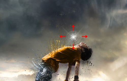 步骤11、为了表现出人物解体时所释放出某种超自然之力的“白色光束”,用同样的笔刷形状进行操作。效果如下: