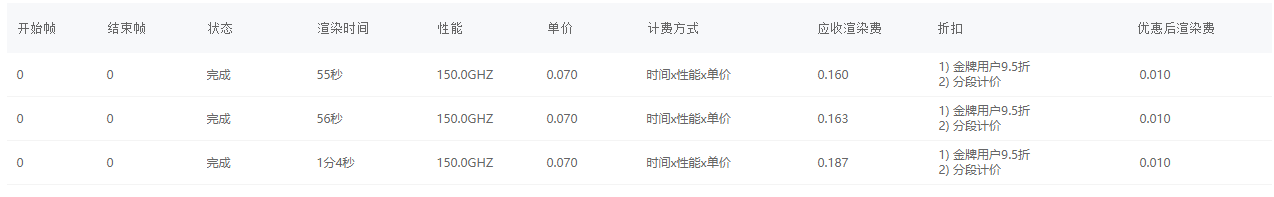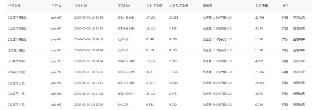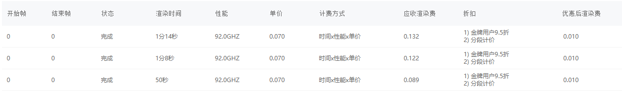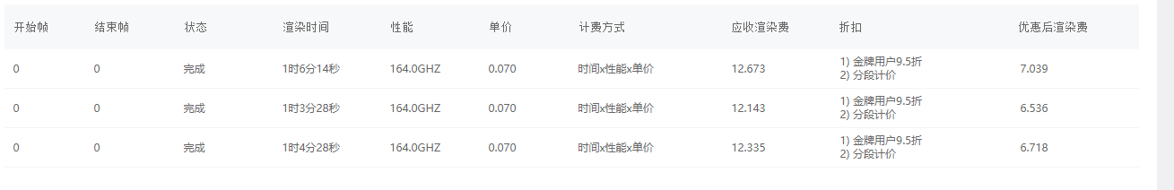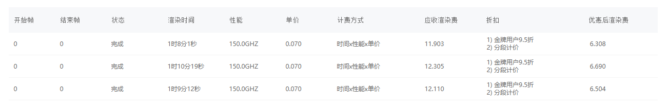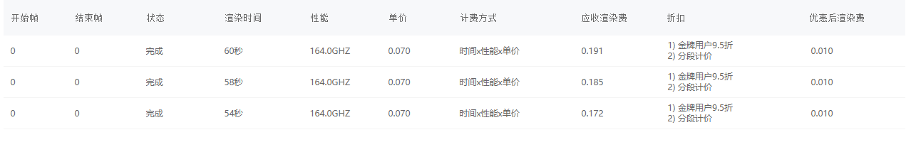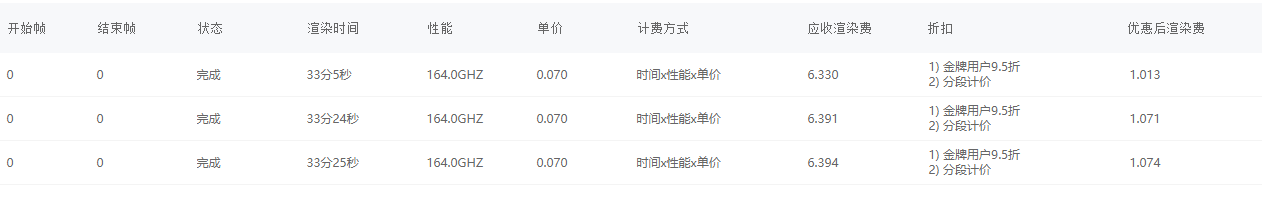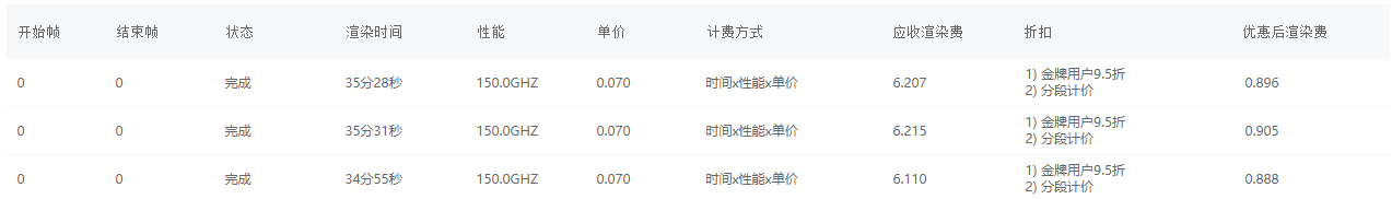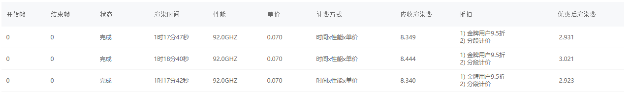 注意:因为提交的是单帧任务,每个任务下面都有3张图,所以有的图在没有CPU加速费的情况下超过25元封顶的不要觉得奇怪。