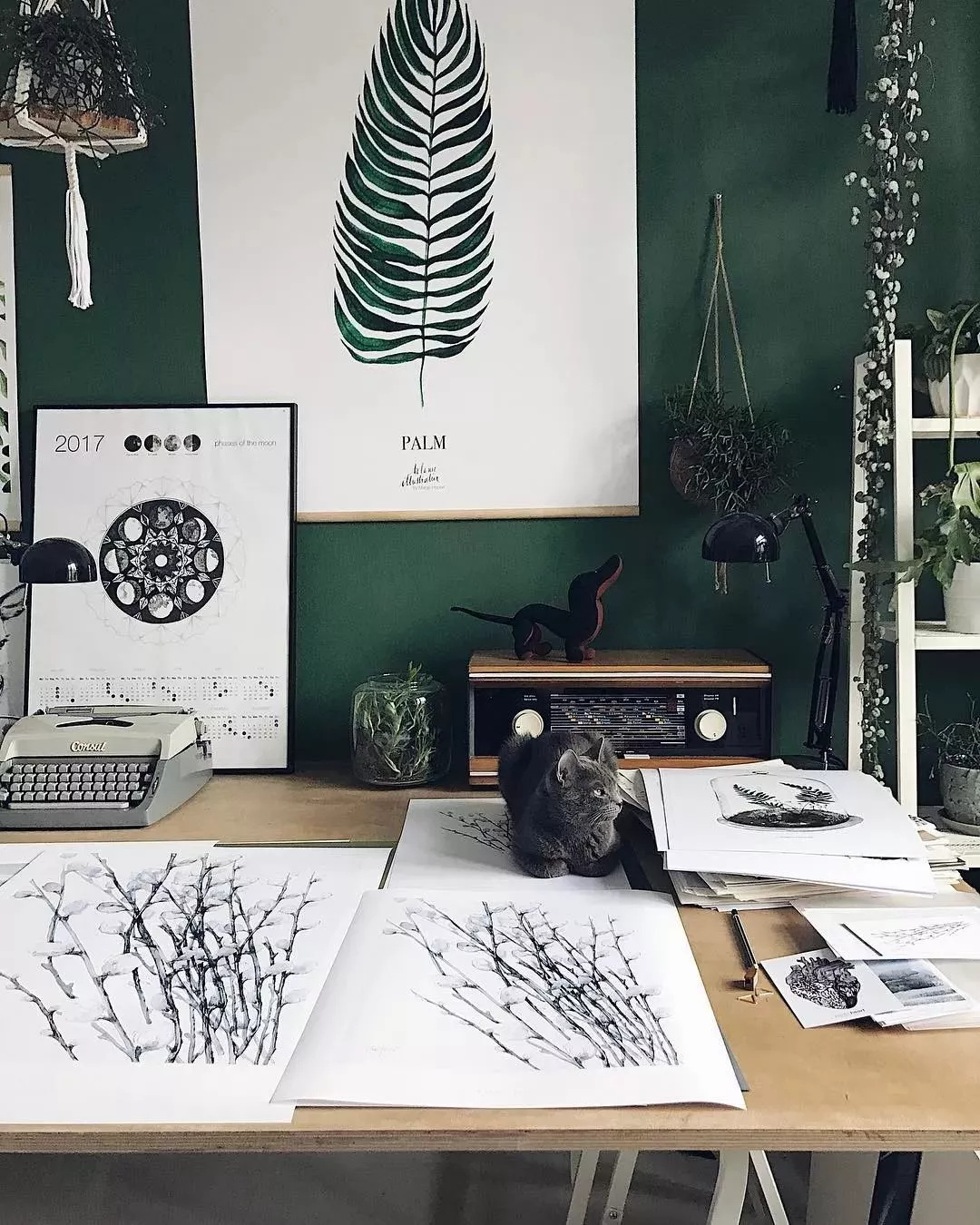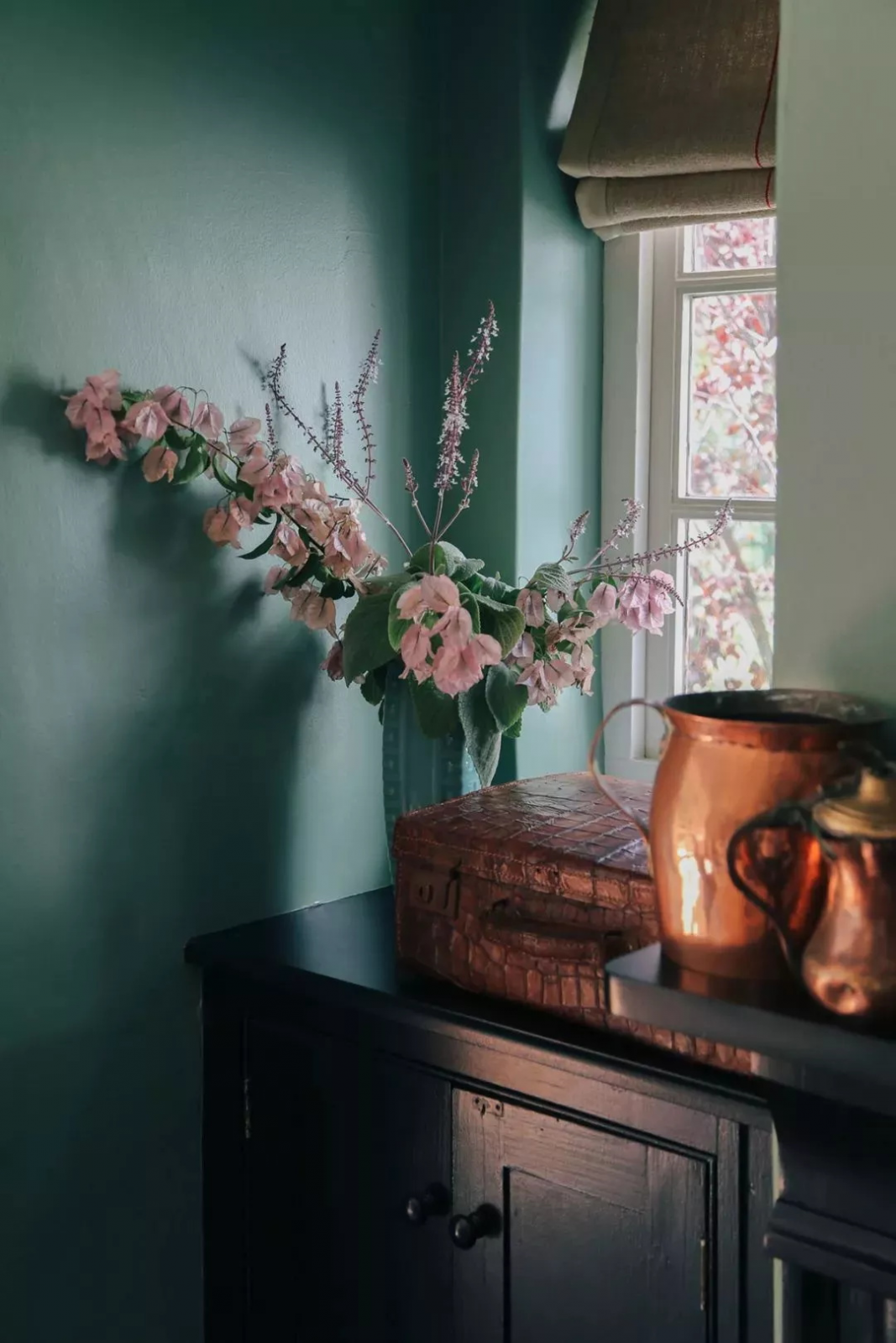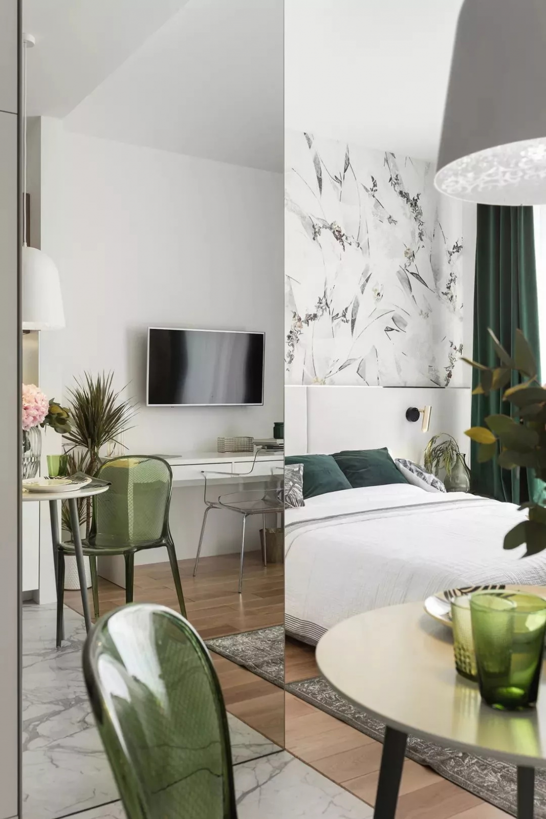 除了墙壁的大绿,房间内的家具也可以出现呼应,整个房间的层次感就丰富起来了。