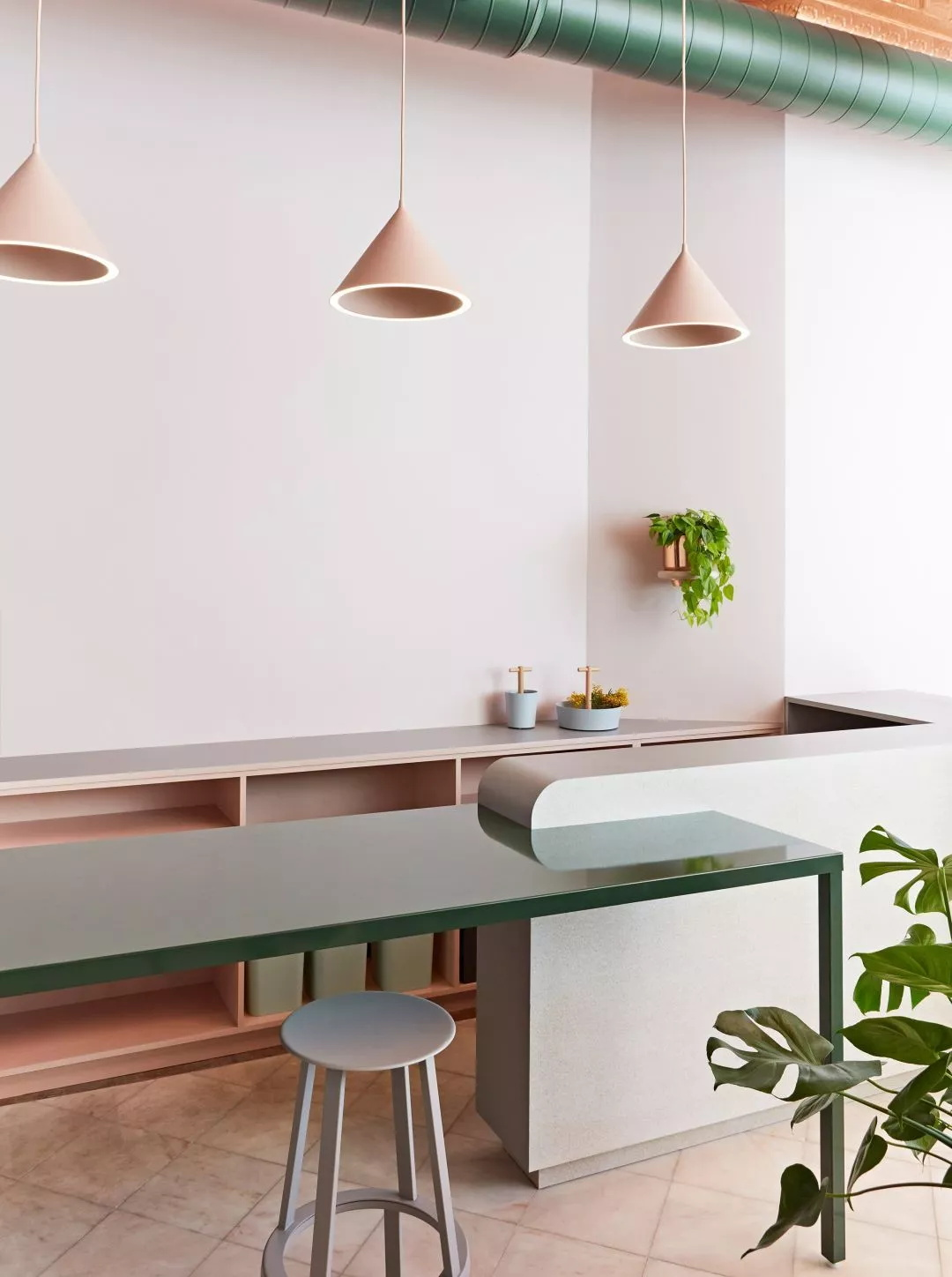 灰绿的明度和纯度都比较低,不会绿到刺眼睛,比较适合做大面积的墙色。