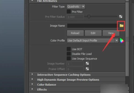 7、双击file节点,在属性编辑器里找到image name后的文件夹图标。