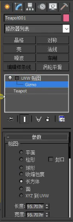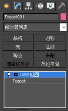 那有没有更加直观的方法呢?我们还是以茶壶为例,我们在选中茶壶之后,在它的修改器列表中找到UVW贴图修改器。