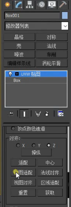 通过这样的调节,贴图是会变形的。那有什么方法可以保证我们的平铺不会变形呢?我们可以把贴图平铺给它,继续给它添加一个UVW贴图修改器,为了保证它和我们的比例相同,直接在对齐里面找到位图适配,它是为了保证图像的平铺比例与我们的比例是一样的。