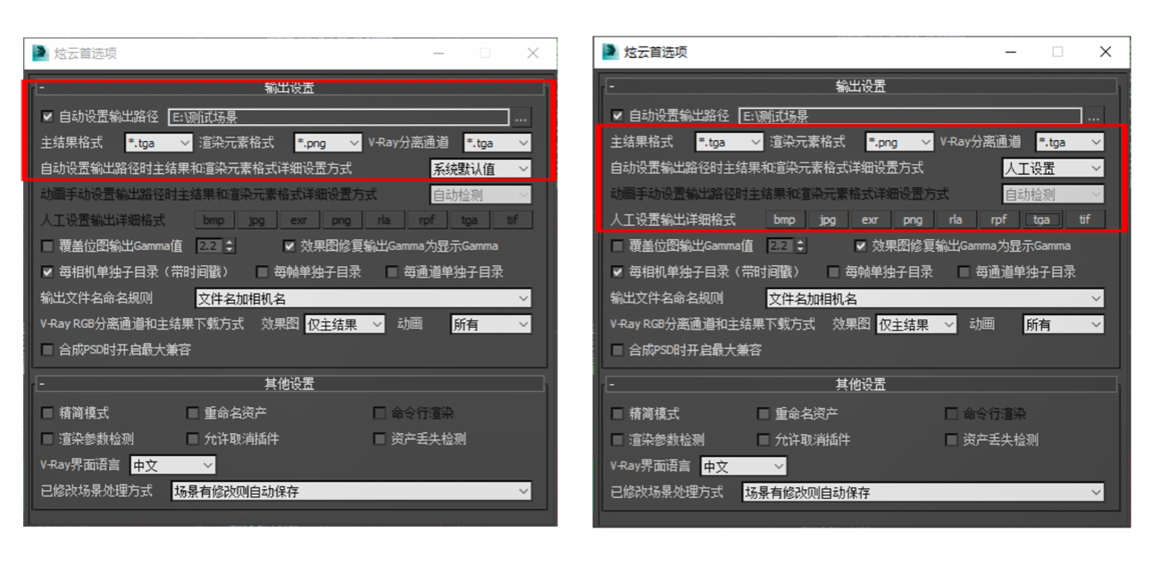 对于动画渲染任务的结果输出,炫云客户端最新的插件新增了自动设置输出路径和手动设置输出路径,我们可以提前根据需要使用的格式做一个预先设置,这样就方便以后提交任务时使用。