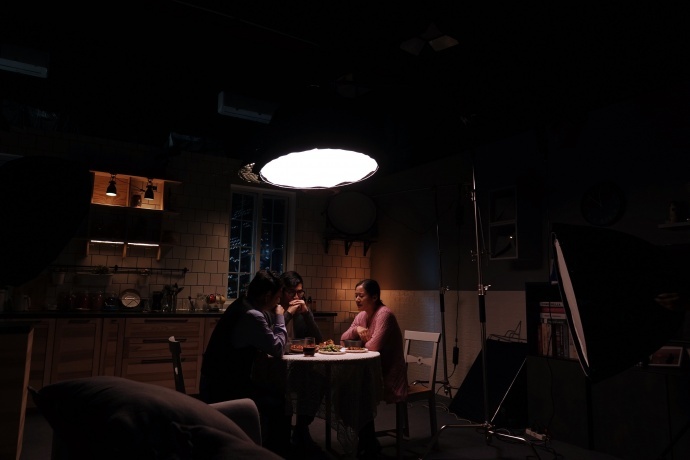 当我们在摄影棚里拍摄一个温馨剧情的家庭短剧的时候。在棚内需要尽量地还原场景真实性,即布光需要在保证真实性的基础上再进行艺术化处理。接下来看看是怎么来布光的吧!